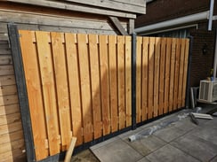 Schuttingdelen waren aan vervanging toe. Deze robuuste vernieuwde oplossing kan weer jaren mee